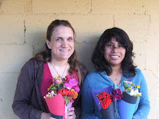 May 1st is May Day in the States. It is also my mom’s birthday. Almost every year growing up my mom would find a paper basket filled with fresh cut flowers on her door step. It’s a tradition that I have carried on with my girls. Marvella did with me ever year for seven years. Sadly this year she won’t be joining me because her dad decided that age 17 it was time for her to come home and work with her family. This year Edith Marisol will be helping me! (On a side note, Marvella had her dad call me yesterday to wish me a happy birthday. It was the best present I cold have asked for!)