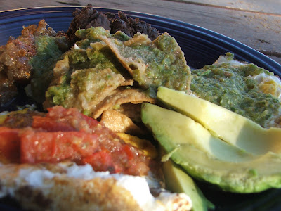 A couple weeks ago I treated myself to one of my favorite breakfasts for lunch. Chilequlas, huevos divorciados, frijoles y papas fritas. What is all that you might ask? Chilequilas are fresh chips covered with salsa so that they are soft, a great way to use those stale corn tortillas. Huevos divorcados are “Divorced Eggs” two eggs, one with a green salsa and the other with a red salsa. Frijoles-beans. Papa fritas-hashbrowns. When you have them all on one plate they make a wonderful meal!