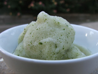 Here is another treat inspired by the foods I eat while in Israel last summer. After dinner one night I had a delicious sorbet, Lemon Nana (mint). It was so light and refreshing. The perfect way to end a meal. Soon after I got back to Mexico I made this delightful treat! It is so easy to make, you just have to eat it fast so it doesn’t melt away!
