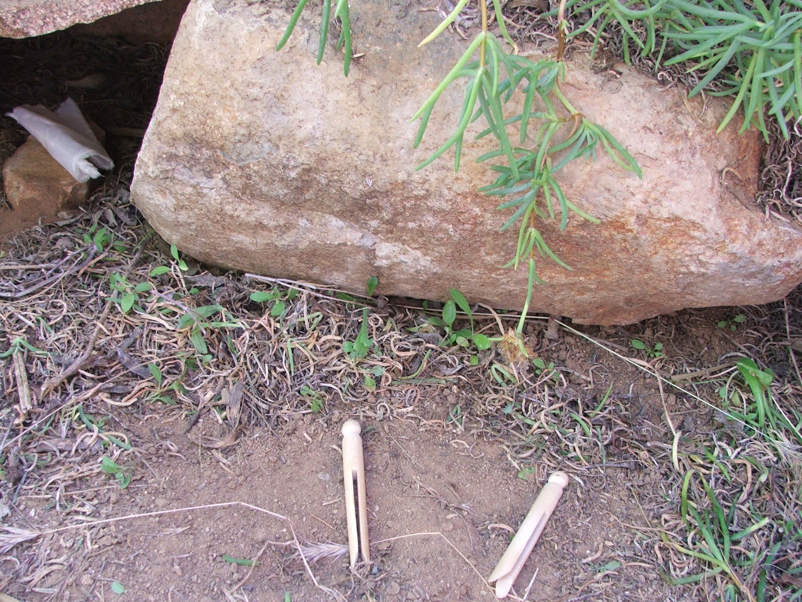 We arrange the large rocks to make a tomb. We place a small rock inside the tomb for a niche. We wrap one of the cloths pins in the white cloth to represent Jesus. We place Jesus in the niche and roll a rock over the opening. The other two cloths pin are put outside as guards.