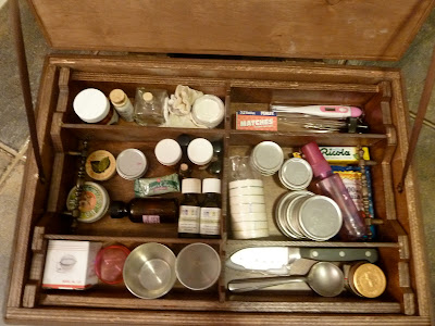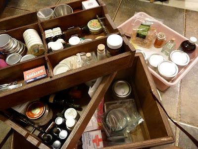When I think Medicine Chest (or trunk, cupboard, et c.) the prettiest images float through my mind. Sparkly bottles, neatly rolled muslin, tiny droppers, various shapes of jars and pots of ointments and oils. I think of something that can’t be opened without wafting scents of peppermint and strong herbs filling the room.